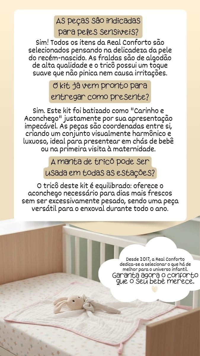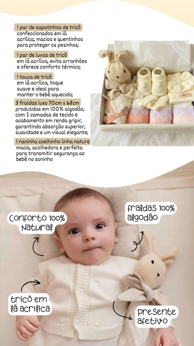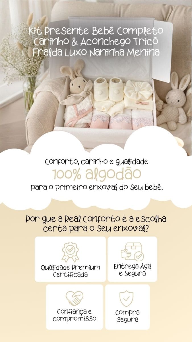 Kit Presente Bebê Completo Carinho & Aconchego Tricô Fralda Luxo Naninha Unissex